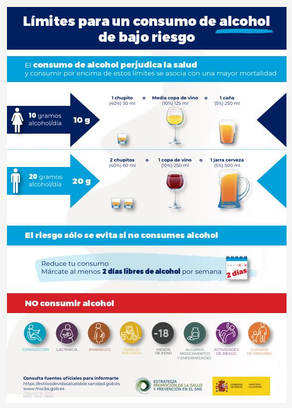 Los límites para un consumo de bajo riesgo de alcohol indican el consumo a partir del cual se produce un aumento